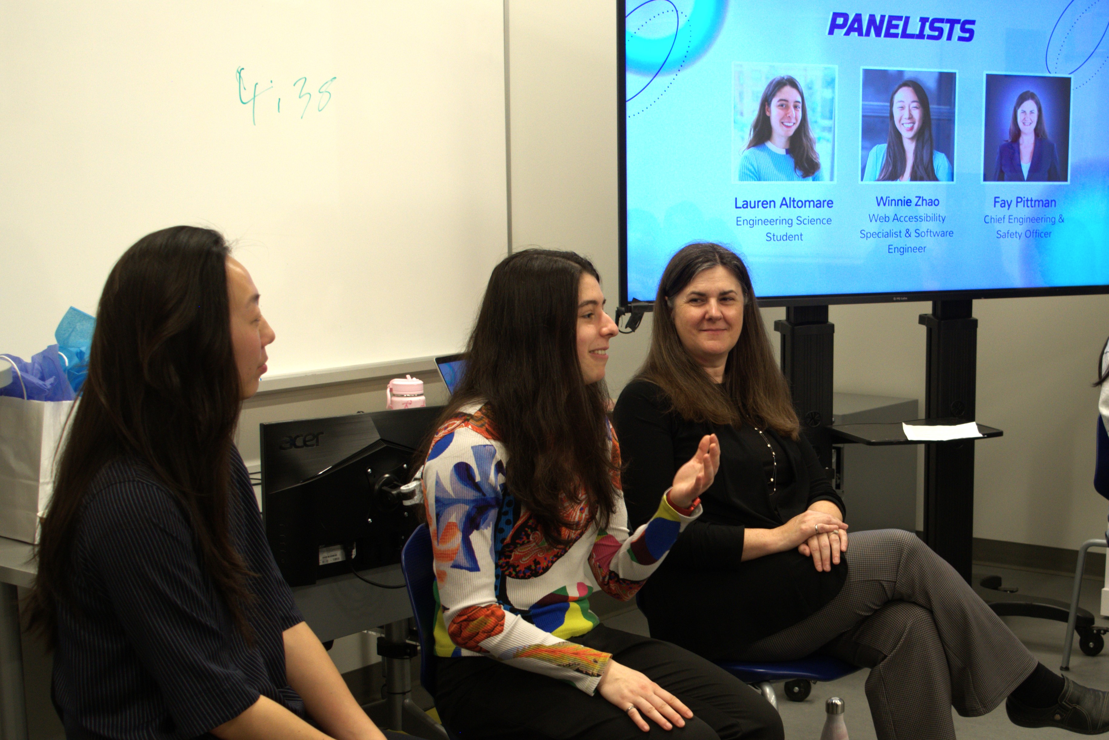 They, along with the other panelists further along in their careers, addressed questions about their challenges and successes, role models, how girls can overcome stigmas in tech and the question, “Have you ever been the only woman in the room and what was that like?”